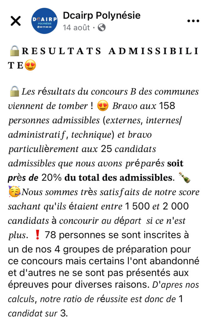 TAUX DE RÉUSSITE CONCOURS DES POMPIERS
